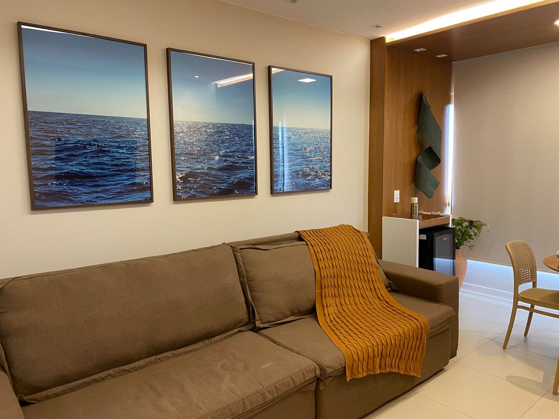 Área de estar com sofá/cadeira