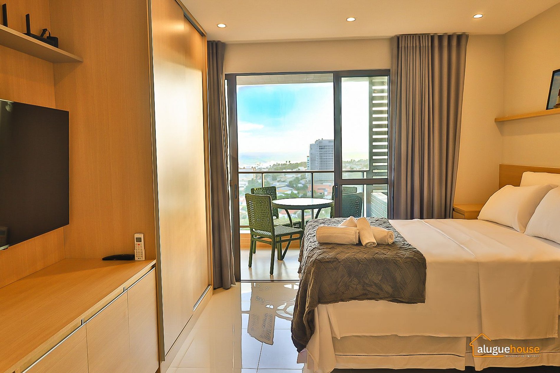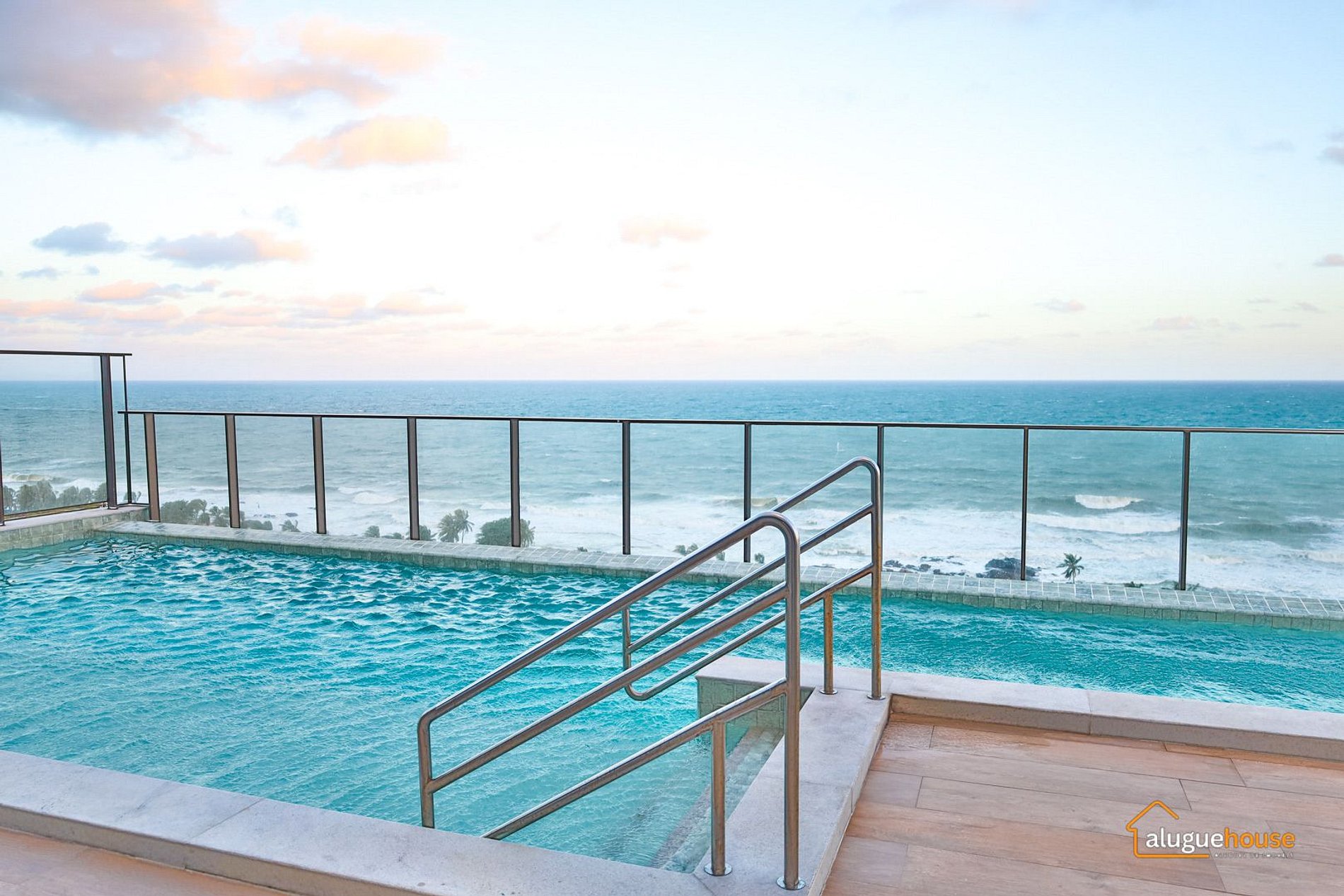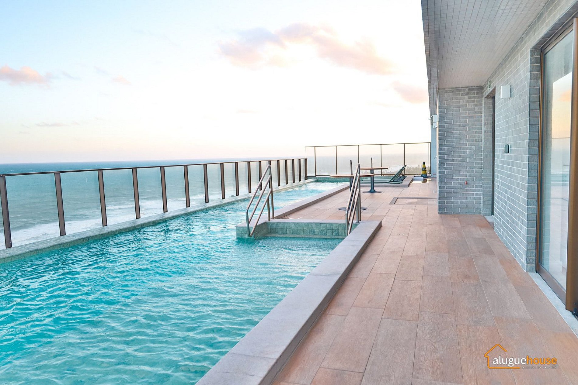 Suíte climatizada com smart TV, sala, cozinha equipada, garagem e condomínio com piscina e total estrutura. A praia está logo ali, perfeita pra começar ou terminar o dia com os pés na areia.