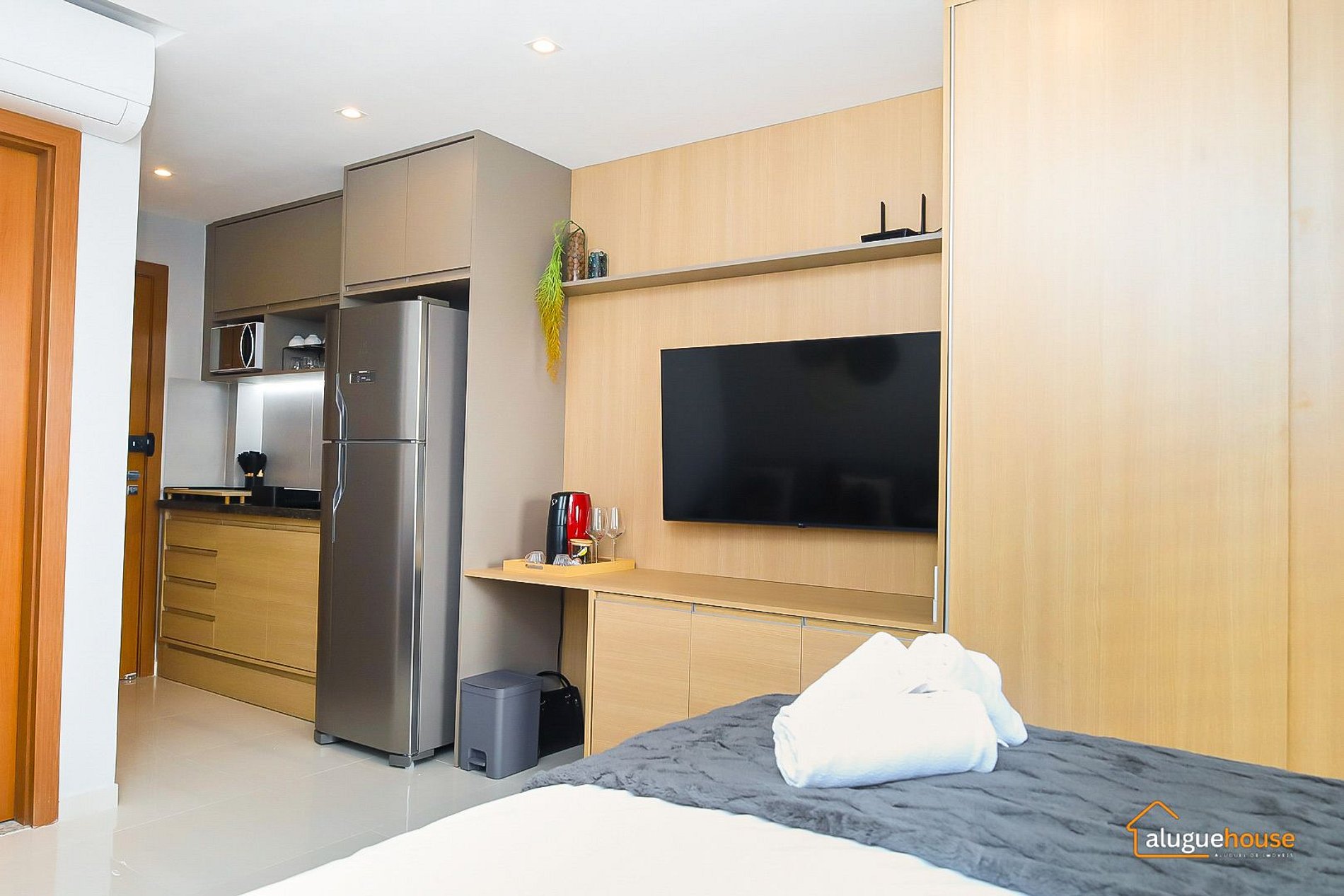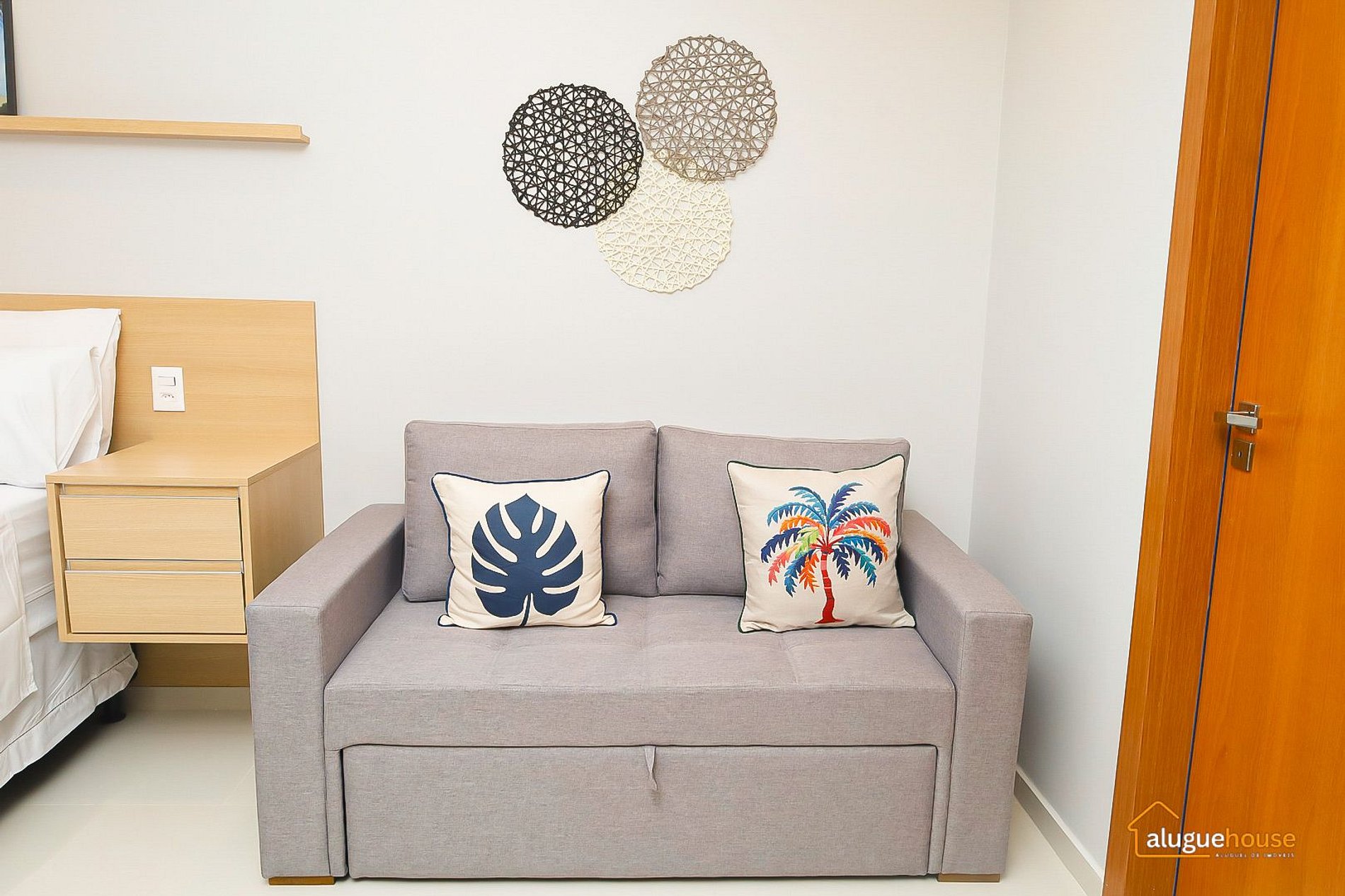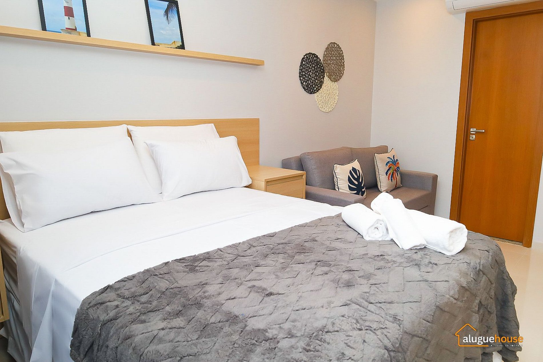 Suíte climatizada com smart TV, sala, cozinha equipada, garagem e condomínio com piscina e total estrutura. A praia está logo ali, perfeita pra começar ou terminar o dia com os pés na areia.