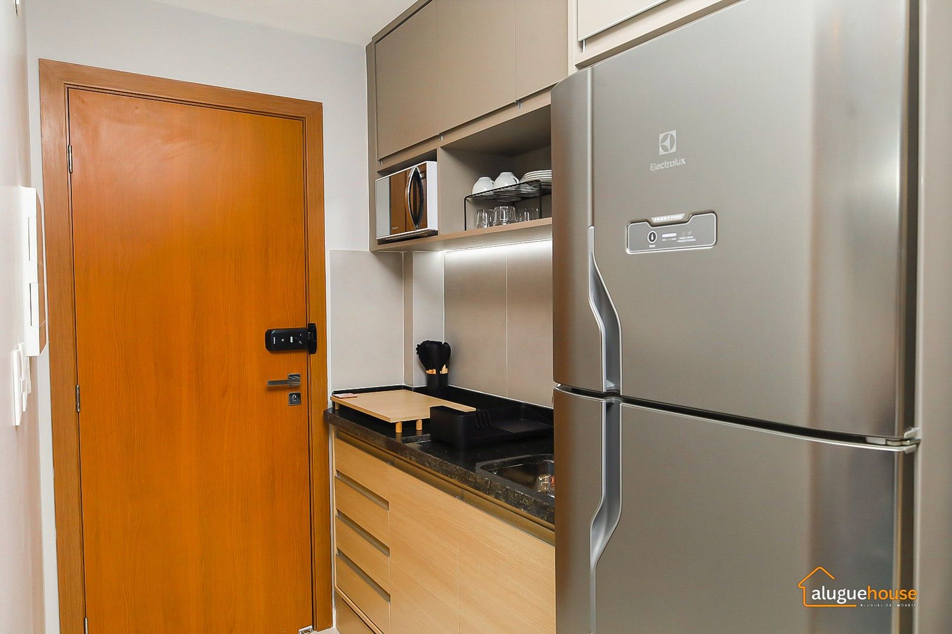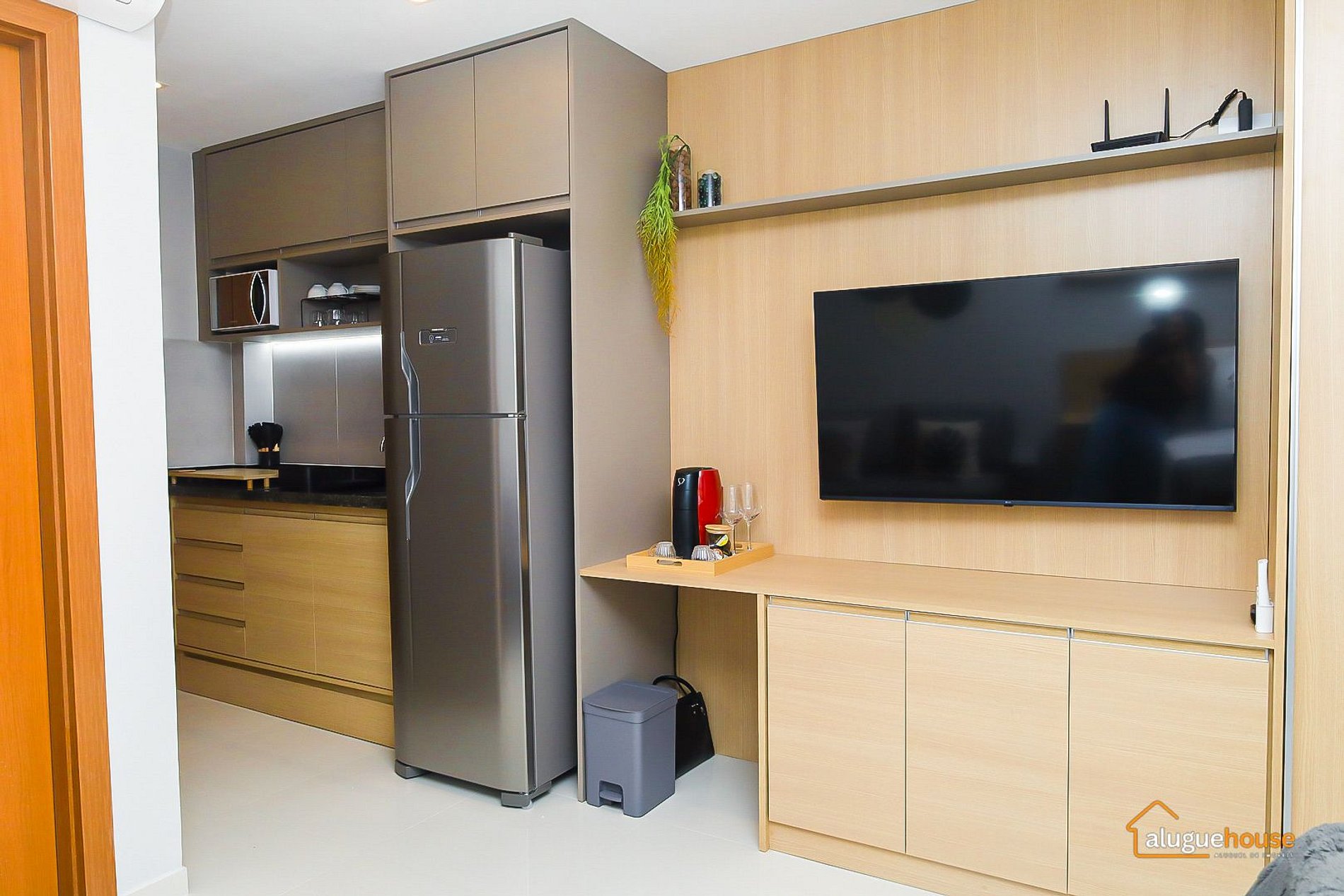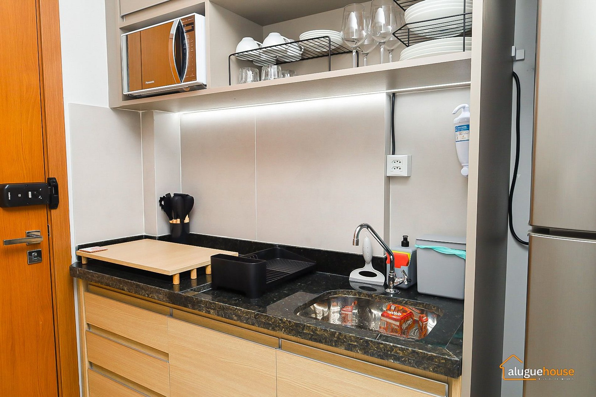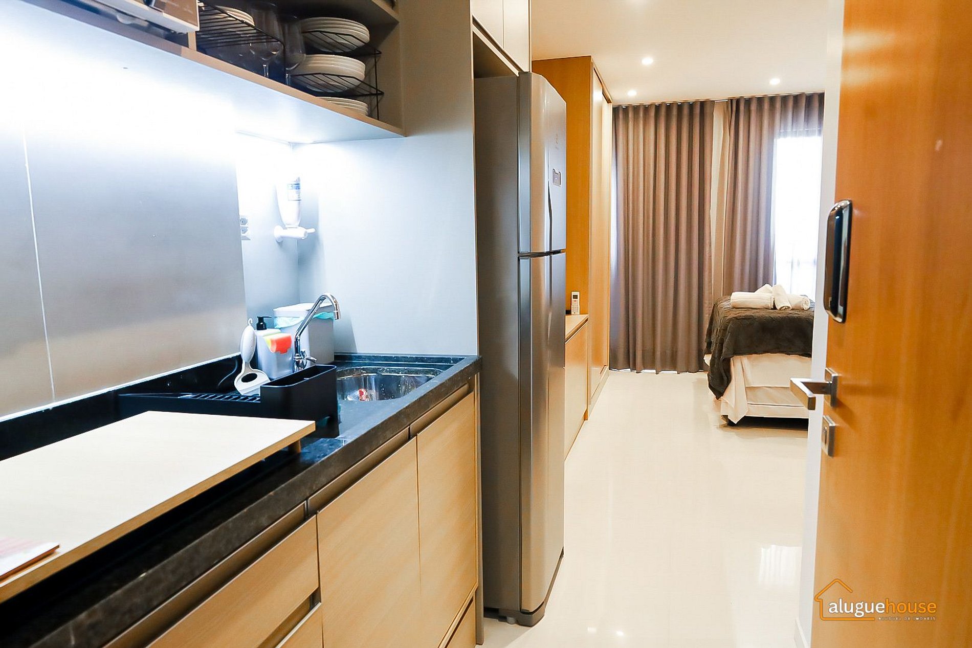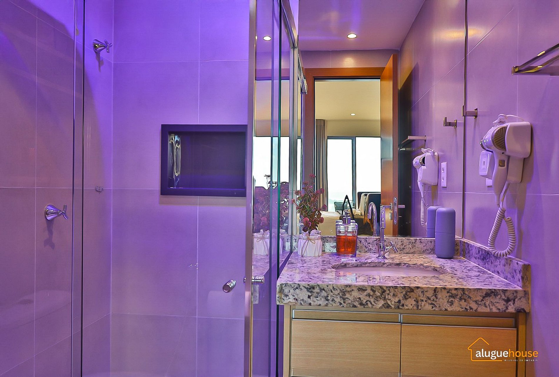 O apartamento é composto por sala conjugada, varanda vista mar, cozinha completa e banheiro social.