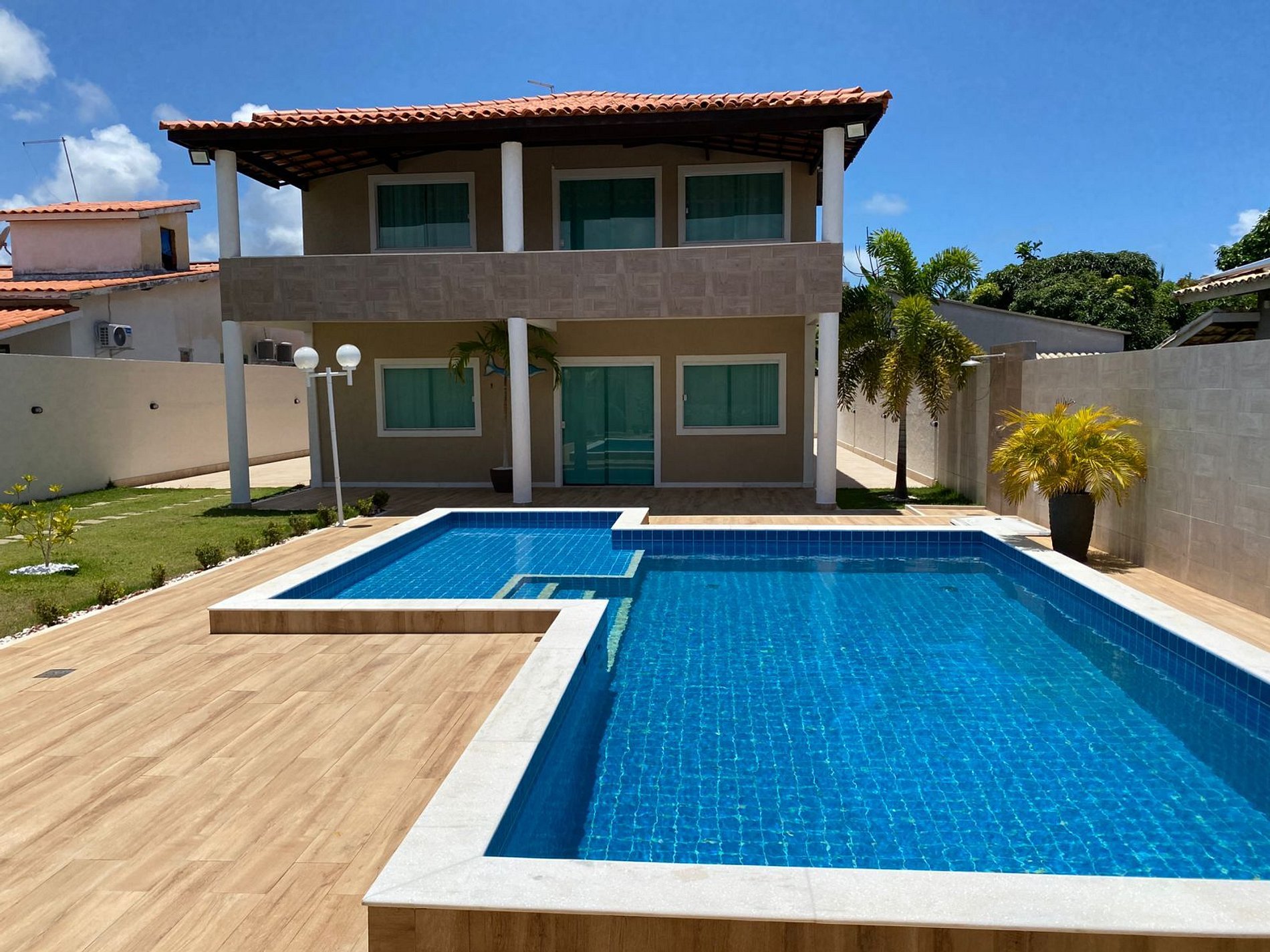 Casa no condomínio Parque das Árvores em Barra de Jacuípe com segurança 24h. A casa oferece 4 suítes e 4 quartos, todos com ar condicionado, sala ampla, piscina privativa com área de churrasco.