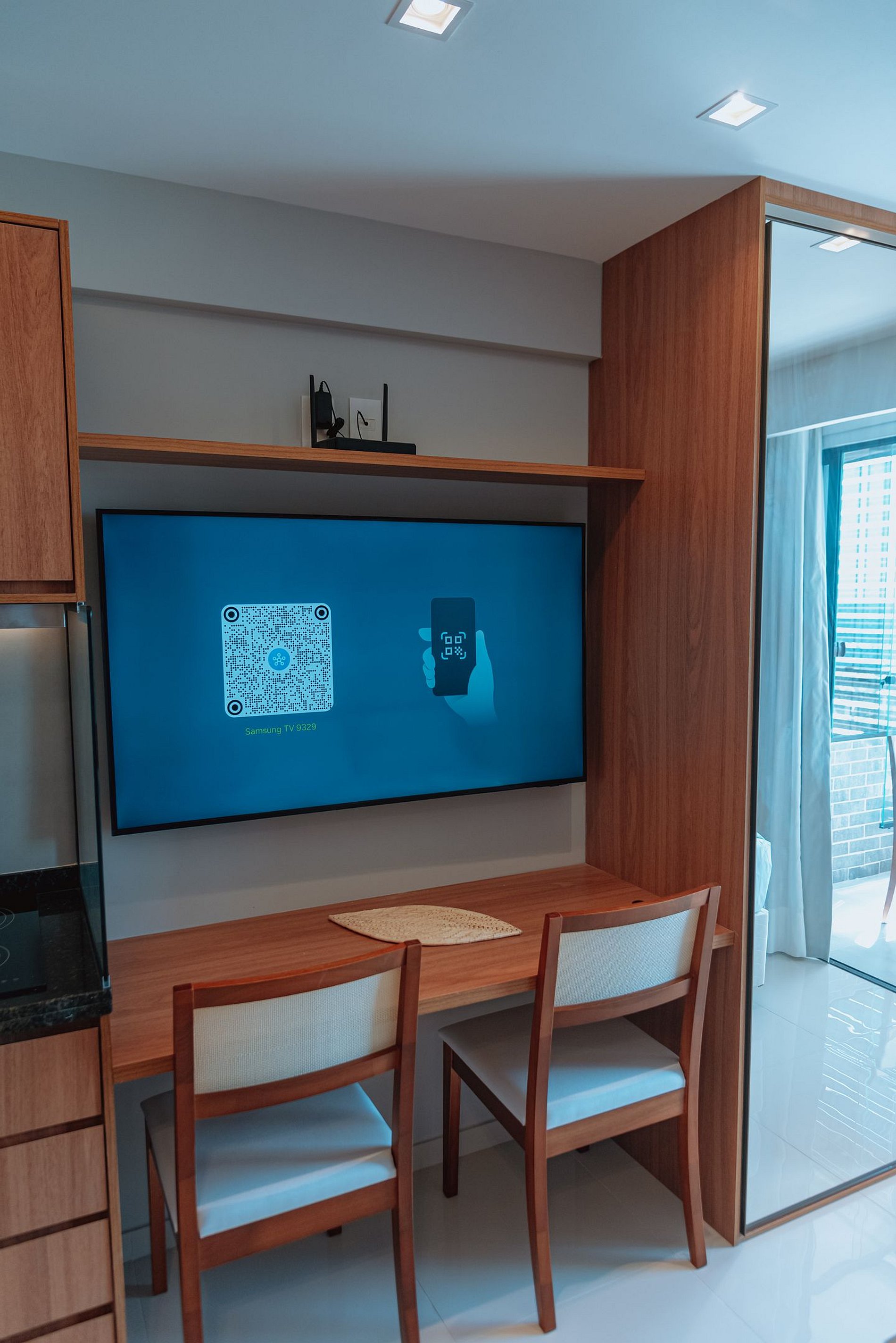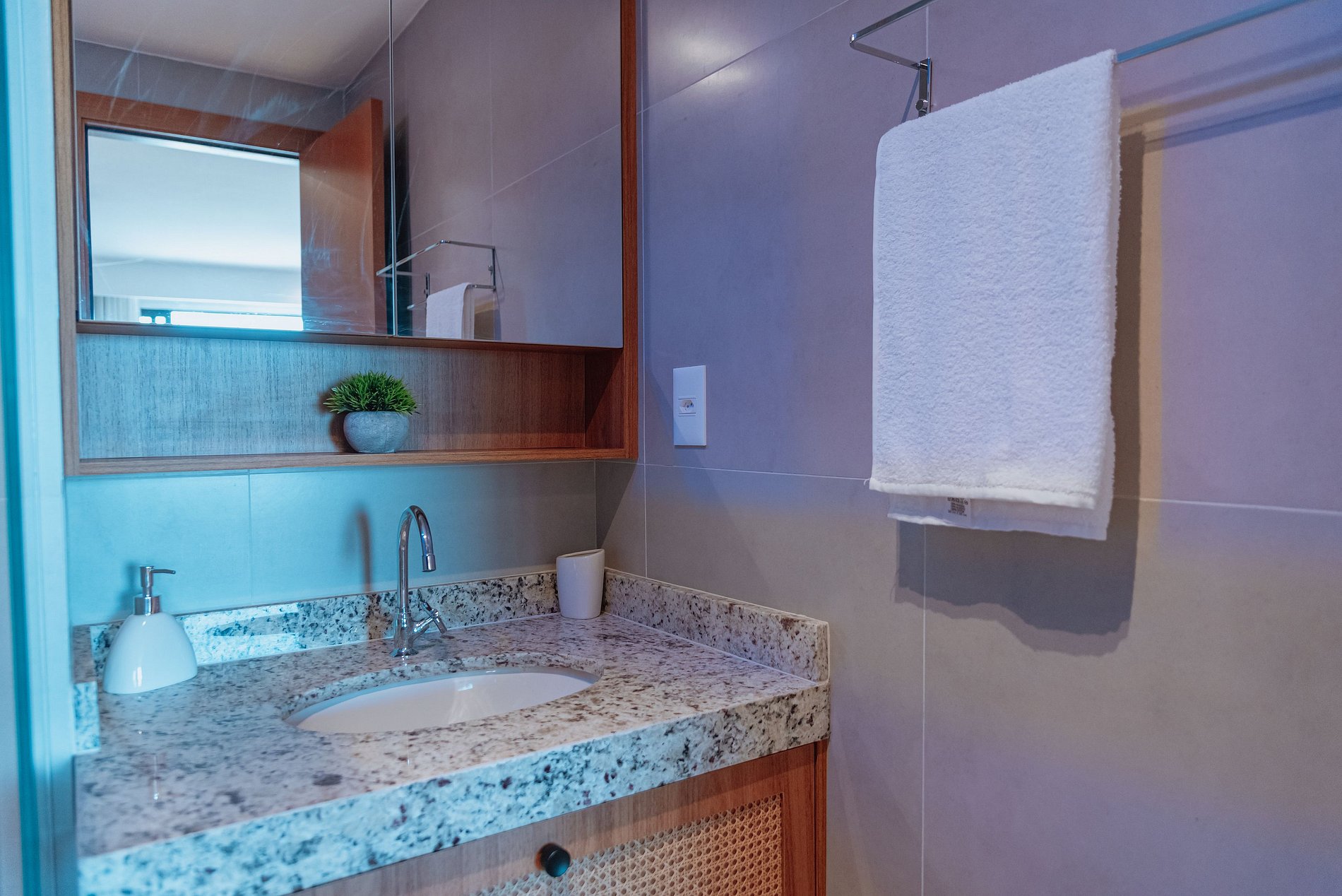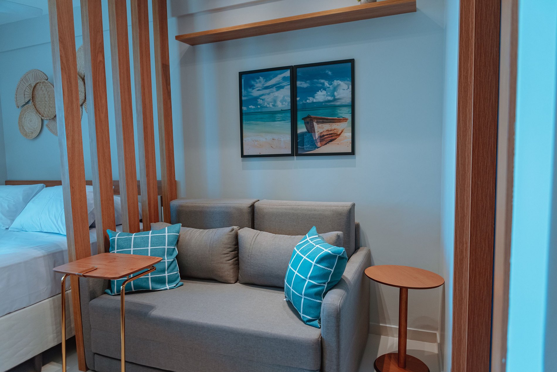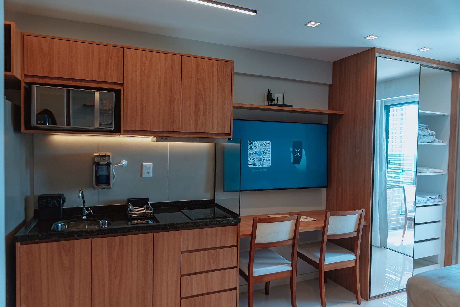 Suíte climatizada com smart TV, sala, cozinha equipada, garagem e condomínio com piscina e total estrutura. A praia está logo ali, perfeita pra começar ou terminar o dia com os pés na areia.
