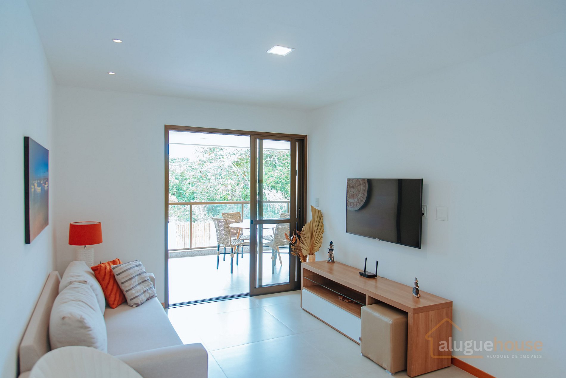 - Sala de estar com sofá, TV Smart, ar-condicionado e mesa com 4 cadeiras;