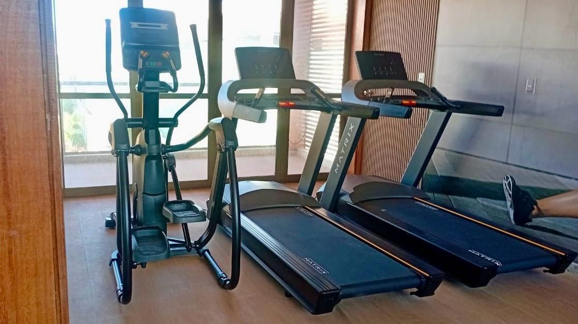 - Cozinha completa com geladeira, fogão, forno, micro-ondas, sanduicheira, kit café, chaleira, liquidificador, taças de vinho, panelas, louças, utensílios e filtro de água;